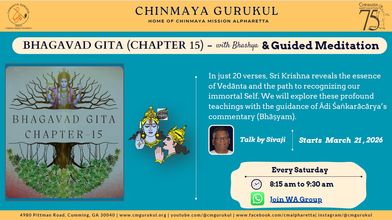 Join Online classes on Zoom every week day from 8:15pm to 8:30pm to learn chanting Bhagavad Gita Chapter 15