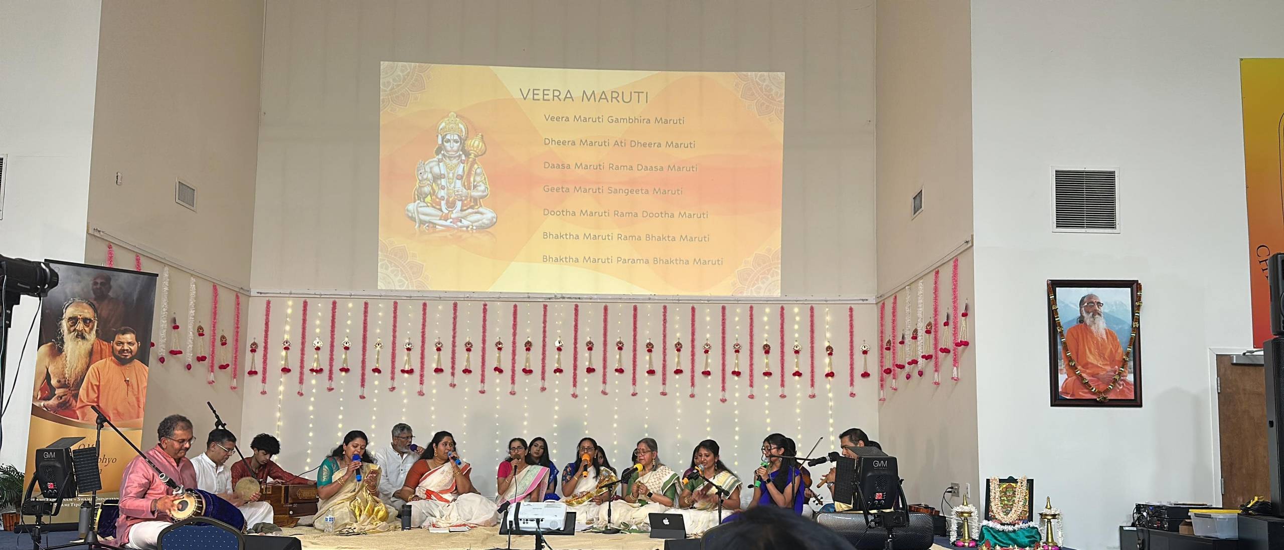 What a heart-warming evening it was—filled with soulful bhajans, devotion, and the collective energy of everyone who joined. Each note offered was truly an expression of gratitude and love. The words of all bhajans were displayed on a screen so everyone could sing along.