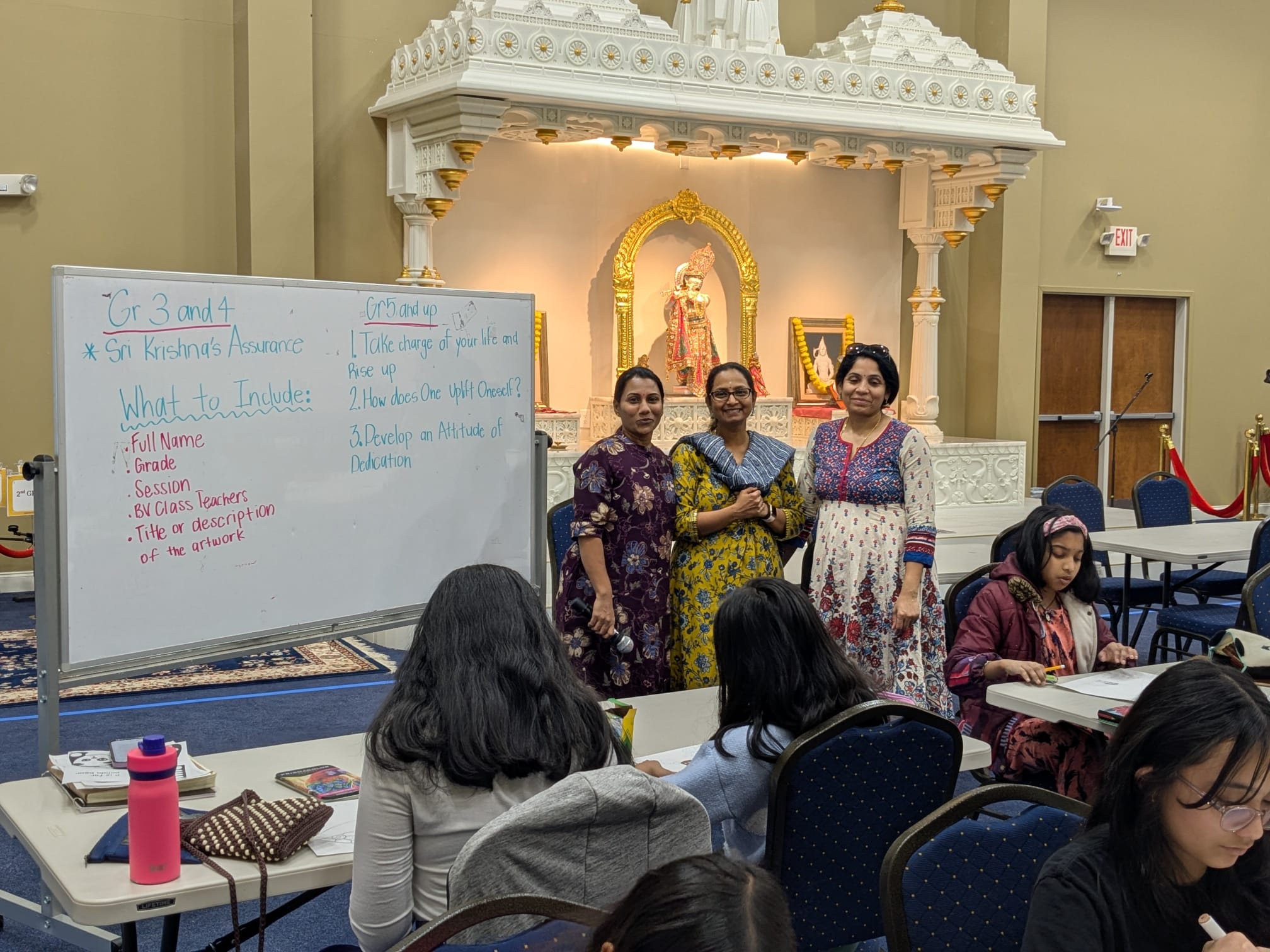 a) Draw a picture of Lord Krishna standing by you or with you while you are doing something important or challenging