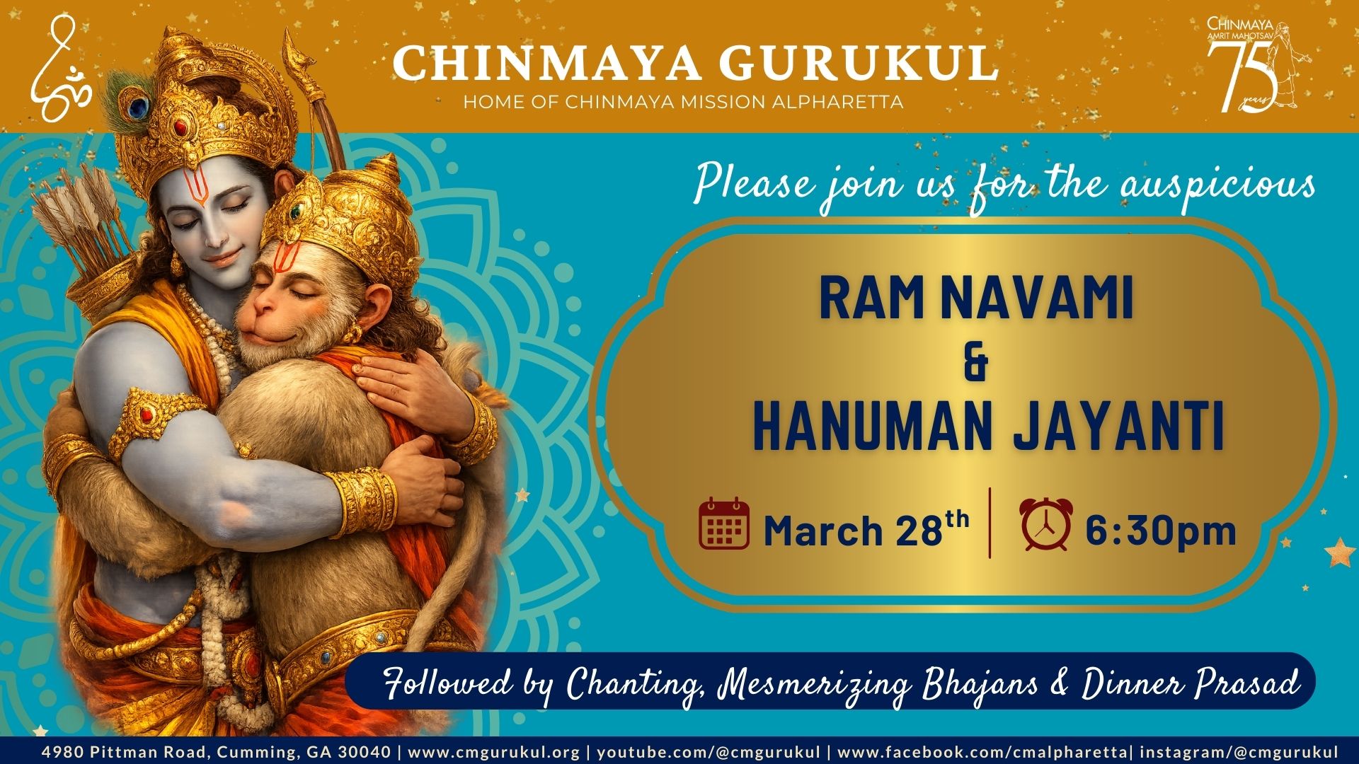 Featured March 28 @ 6:30 pm - 9:00 pm Ram Navami & Hanuman Jayanti Celebrations Rama means the one who revels in all. Bhagavan Shree Rama was born in Ayodhya…