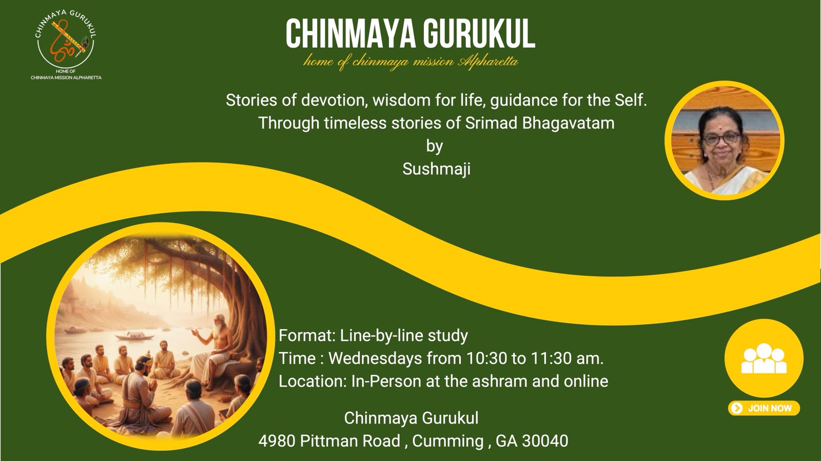 November 26 @ 10:30 am - 11:30 am Devi Group Adult Class Devi Group Adult Class Chinmaya Gurukul 4980 Pittman Rd., GA, United States Devi Group Adult Class